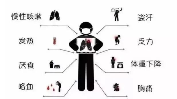 常见的症状包括:咳嗽、咳痰、痰中带血、发热(一般为37—38℃之间,多为午后低热)、咯血(自少量至大咯血)、胸痛、乏力、食欲不振、盗汗,病程长的可有消瘦,病变广泛而严重的可有呼吸困难,女性患者可有月经不调。