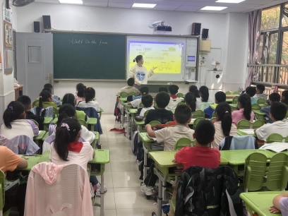 课上,赵雅蔚通过核心问题What can you find on the farm?为引领,前置任务设计,使学生在课程伊始便明确学习和探索的方向,激发内在学习动力与参与热情。老师以充满童趣的动物动画歌曲导入,瞬间吸引了学生们的注意力,激发了他们对本节课内容的学习兴趣。在故事讲解环节,赵老师巧妙运用图片环游的教学方法,引导学生观察图片,预测故事发展,鼓励学生大胆表达自己的想法。通过设置角色扮演、小组讨论等多样化的课堂活动,学生们积极参与到故事的学习中,不仅锻炼了英语口语表达能力,还培养了团队协作精神。此外,赵老师还注重单词与句型的巩固练习,通过游戏互动、使用实物道具、创意表演等多模态教学手段,让学生在轻松愉快的氛围中掌握了重点知识,引导学生学习掌握核心句型。整节课创设“农场”任务链,学生通过角色扮演、小组合作在真实语境中自然习得语言,充分体现“学用结合”理念。赵老师围绕核心问题,构建了情境化的语言学习环境。让学生真实地去感受知识,体验知识。