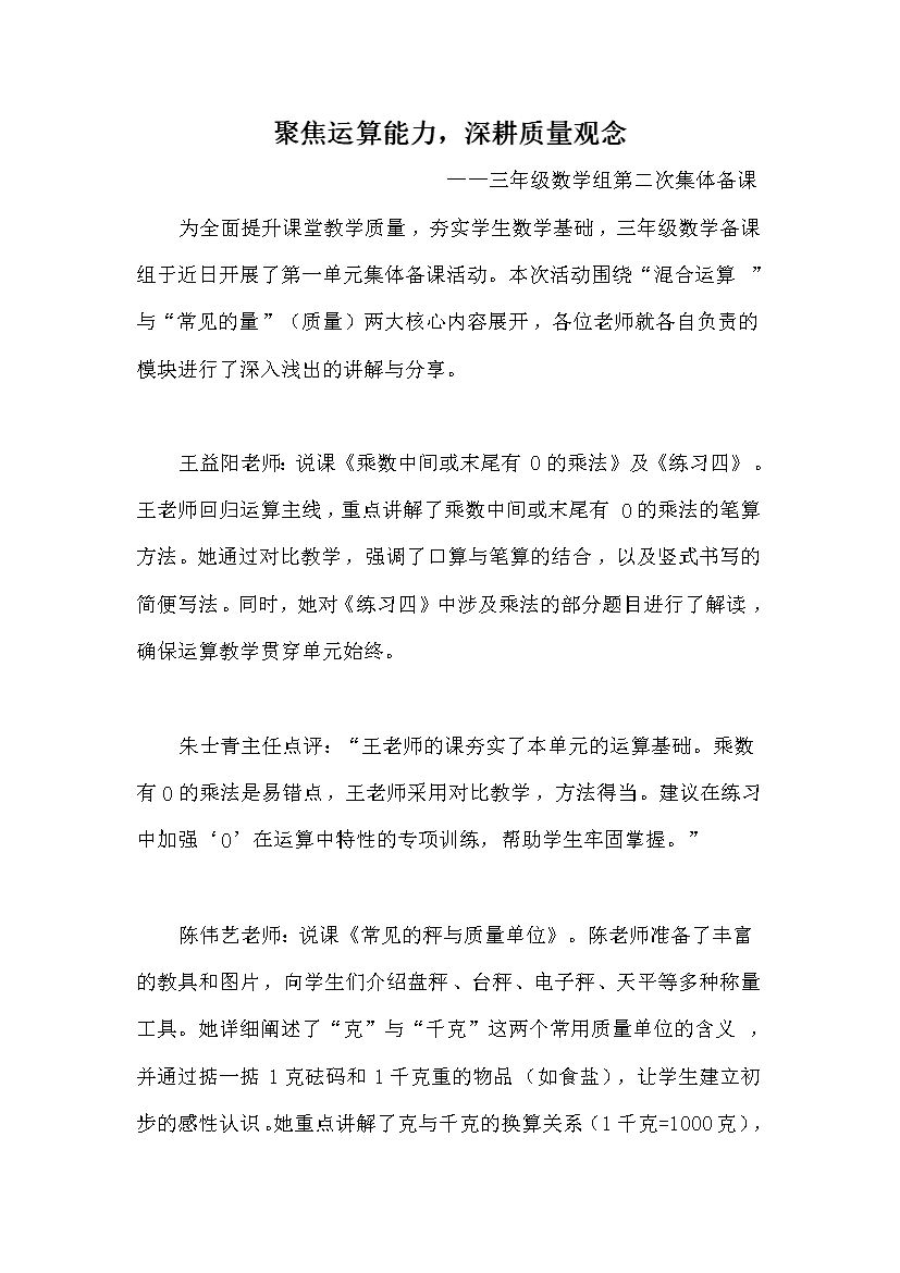 深耕体积教学,构建知识体系 ——六年级数学备课组第一次集体备课活动