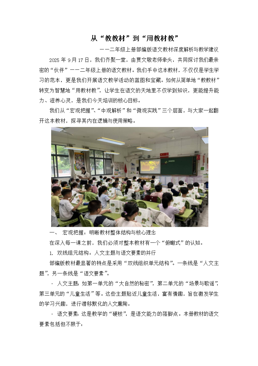 从“教教材”到“用教材教” ——二年级上册部编版语文教材深度解析与教学建议