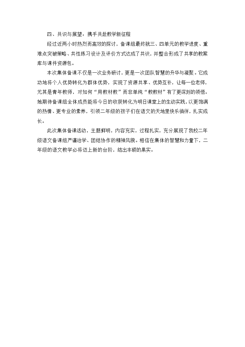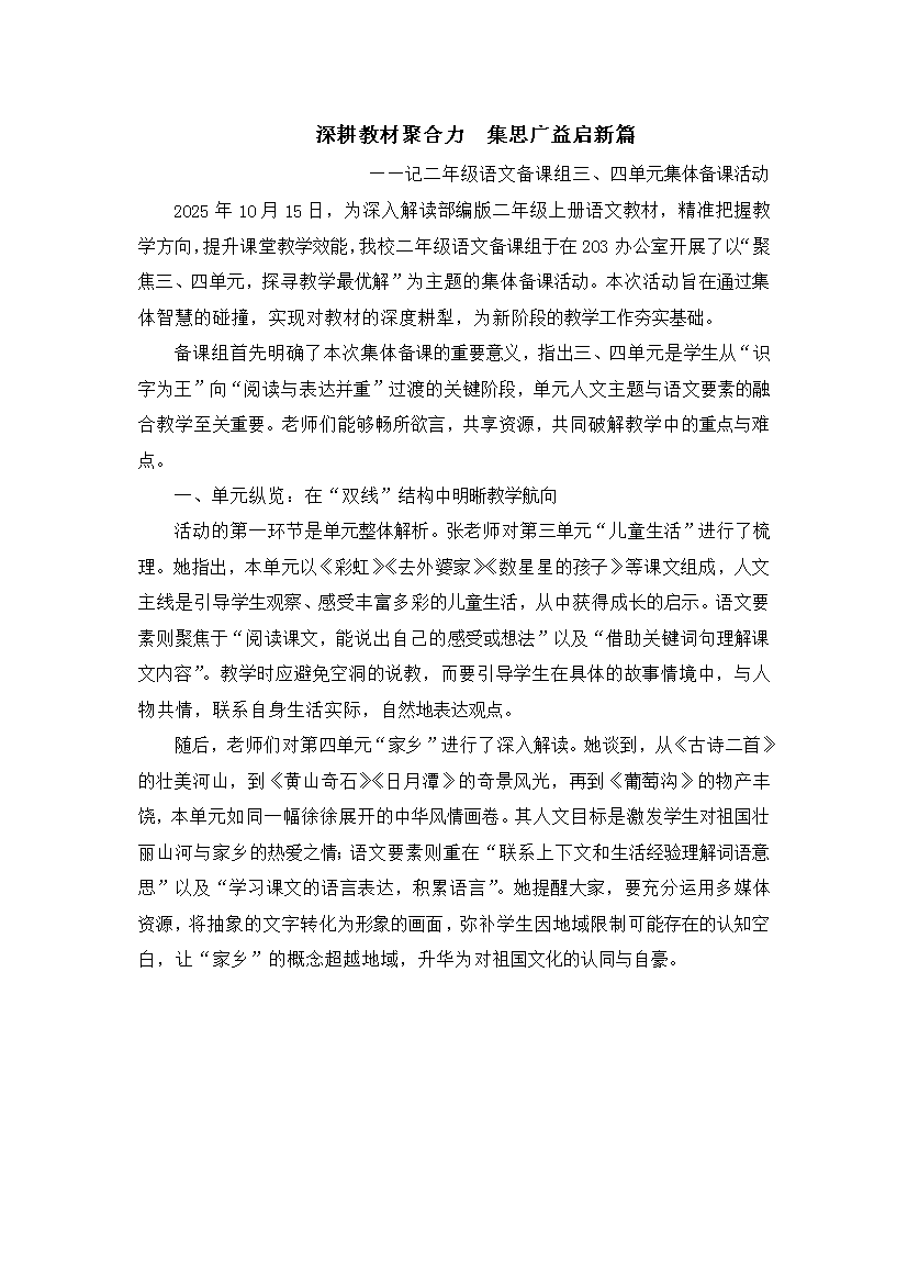 深耕教材聚合力 集思广益启新篇 ——记二年级语文备课组三、四单元集体备课活动