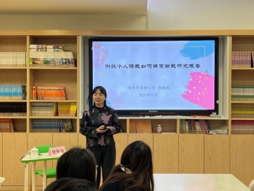 秋阳温润,学思并进。2025年11月11日下午,南京市文靖东路小学特邀南京市潭桥小学副校长徐佩佩莅临指导,开展以“如何做好个人课题研究”为主题的区级菜单讲座。本次活动由教师发展中心施主任主持,青年教师发展班全体教师齐聚一堂,共赴一场教育科研的智慧盛宴。