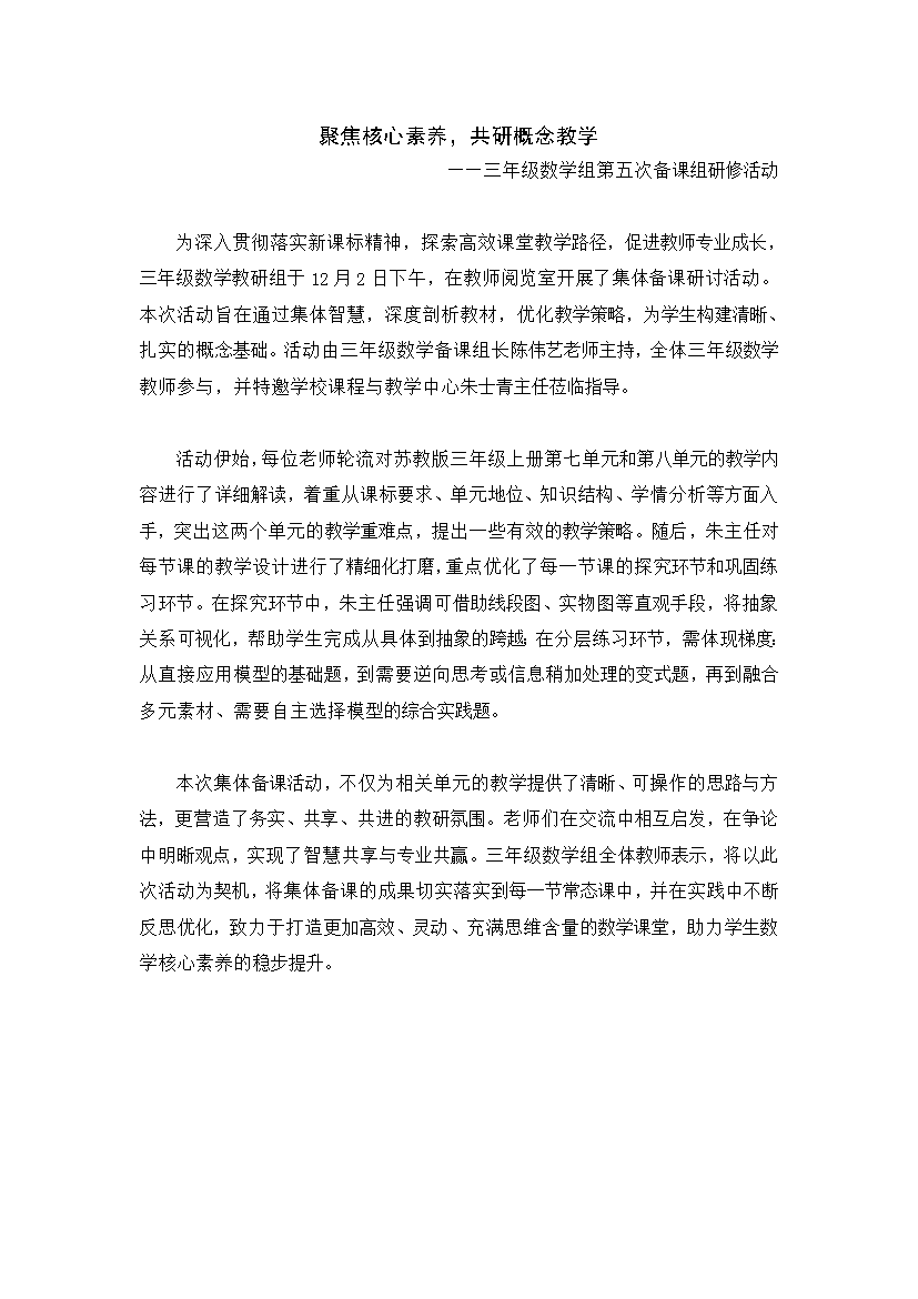聚焦核心素养,共研概念教学 ——三年级数学组第五次备课组研修活动